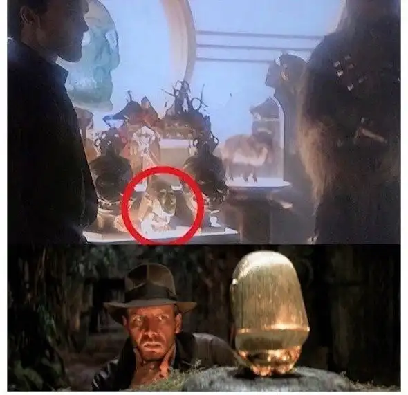 В фильме "Соло: История звездных войн" в одном из кадров на заднем плане можно увидеть золотого идола, за которым Харрисон Форд в роли Индианы Джонса охотился в фильме "Индиана Джонс: В поисках утраченного ковчега" (1981)