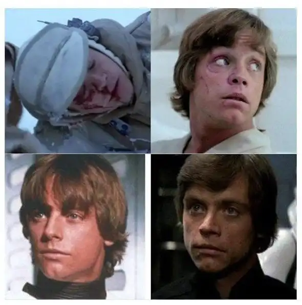 В фильме "Империя наносит ответный удар" нападение на люка хищника на ледяной планете бьыло придумано специально, чтобы объяснить травмы лица у Люка. На самом деле, незадолго до съемок Марк Хемилл попал в автокатастрофу, где серьезно пострадал