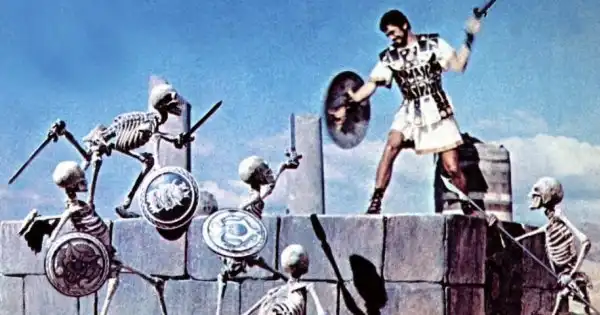 Создатель спецэффектов для фильма Рэй Харрихаузен потратил четыре месяца на покадровое создание боя героя со скелетами. Получилось так хорошо, что в год выхода фильма зрители, вероятно, были уверены, что создатели пригласили на съёмки настоящих живых скелетов.