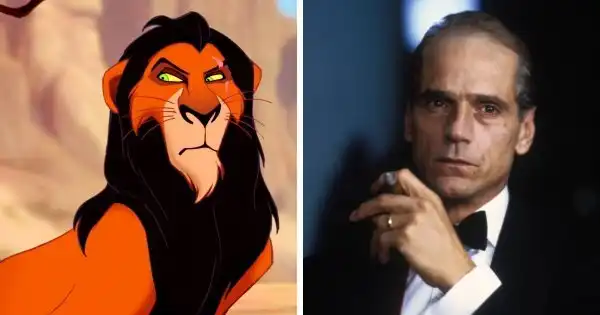 Айронс ещё и озвучил Шрама. Аниматоры в свою очередь вдохновлялись игрой актёра в фильме «Изнанка судьбы» (на фото, 1990), создавая льва-злодея.