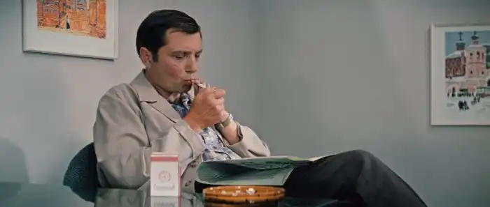 Олег Ефремов курит в фильме "Берегись автомобиля"Пачка сигарет "Столичные" стоила в СССР разное время от 40 до 70 копеек.Трудно найти двух более непохожих режиссеров, чем Леонид Гайдай и Эльдар Рязанов. Но у Рязанова в фильме... тоже фигурирует радиопередатчик в пачке сигарет! В кинокартине "Невероятные приключения итальянцев в России". Фильм Рязанова появился на экранах через четыре года после "Бриллиантовой руки". Поэтому, рация в пачке сигарет скорее всего была данью уважения одного великого режиссера другому, своеобразным "реверансом" Рязанова Гайдаю.Кстати, марка сигарет та же самая - "Столичные".