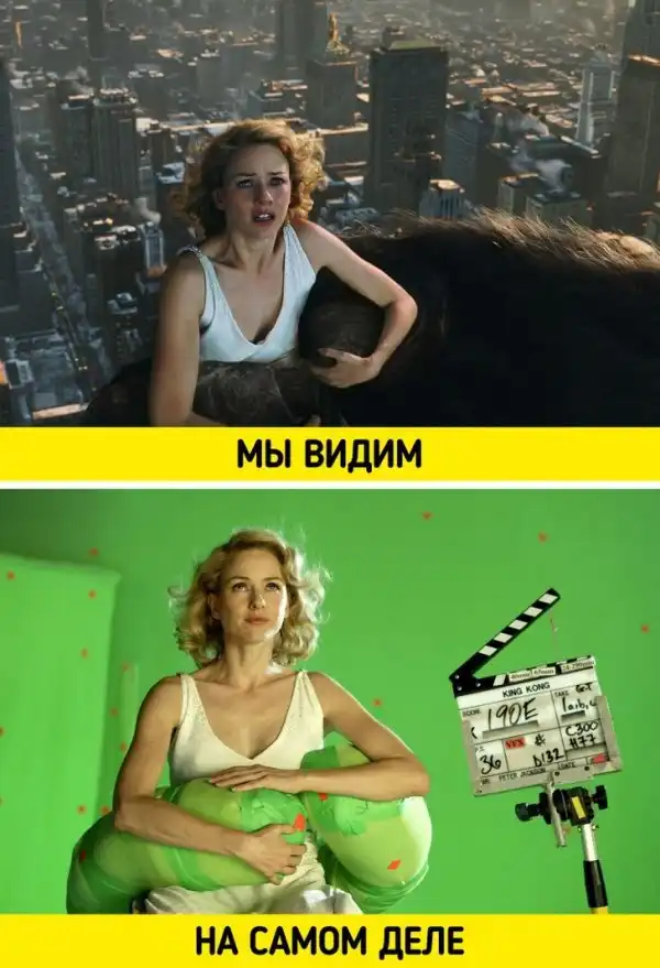 Знаменитая сцена из «Кинг-Конга» с Наоми Уоттс снималась подобным образом