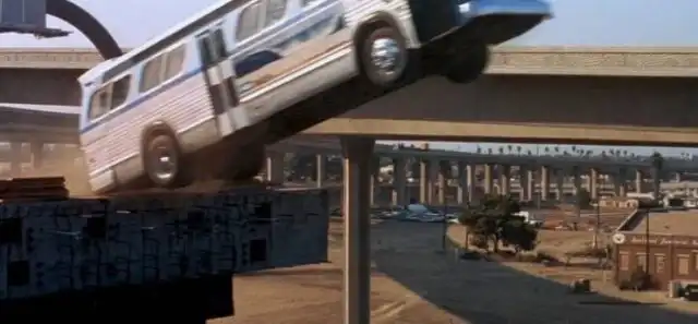 7. Самая известная сцена из "Скорости" - прыжок автобуса с одного конца строящейся автострады на другой. Фактически, мост был полностью собран, а позже его часть была удалена в цифровом виде