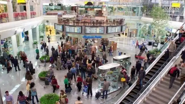 Он был построен в бывшем ангаре с 3 рабочими группами эскалаторов и заполнен торговыми точками множества крупных франшиз, таких как Burger King, Mrs. Fields и WHSmith.