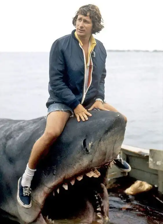 18. Стивен Спилберг на съемочной площадке фильма ужасов «Челюсти»