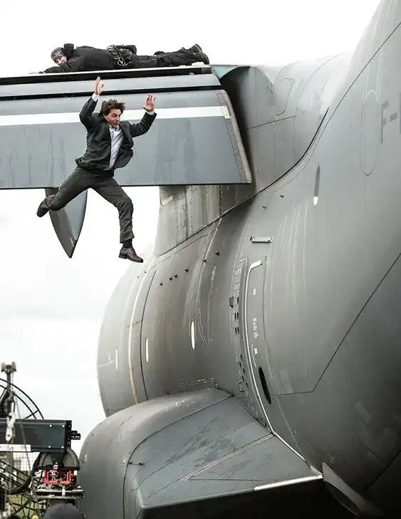 19. Том Круз во время исполнения трюка на съемках фильма «Миссия невыполнима: Племя изгоев»
