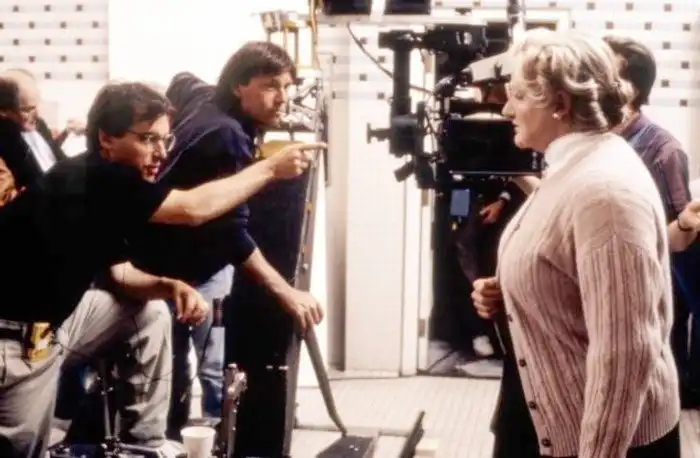 22. Режиссер Крис Коламбус и Робин Уильямс на съемках комедии «Миссис Даутфайр»