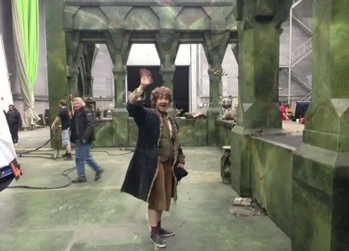 38. Мартин Фримен машет рукой в конце своего последнего съемочного дня в роли Бильбо Бэггинса в фильме «Хоббит: Битва пяти воинств»