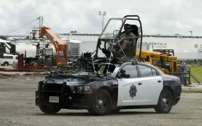 40. Вот так происходило управление полицейской машиной на съемках фильма «Терминатор: Генезис»
