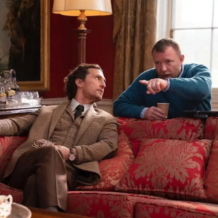 46. Мэттью МакКонахи и режиссер Гай Ричи на съемках фильма «Джентльмены»