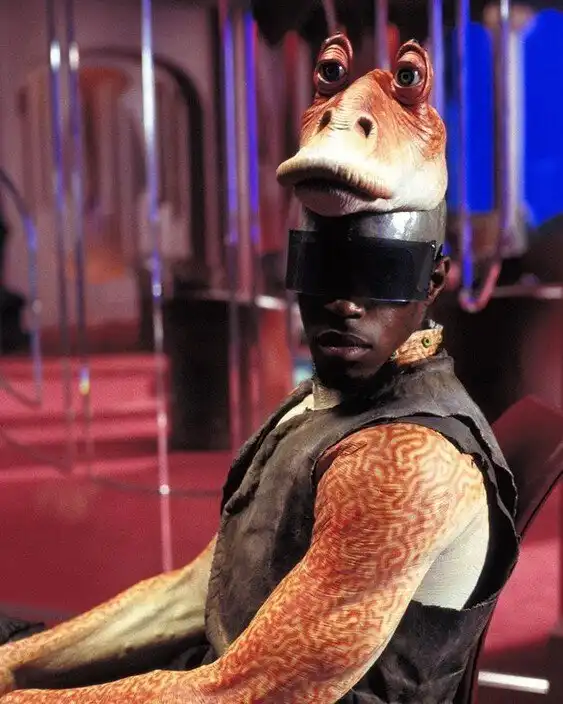 48. Вот так выглядел на съемках «Звездных войн» Джа-Джа Бинкс