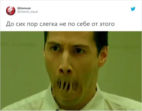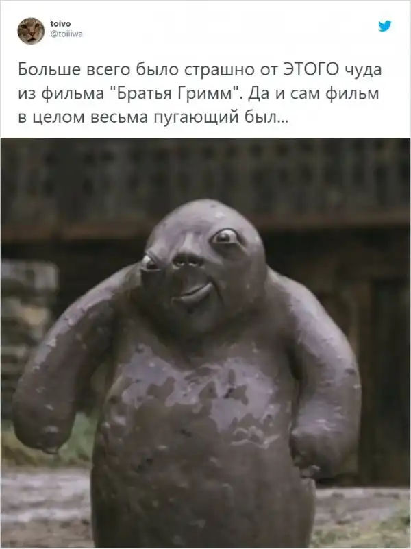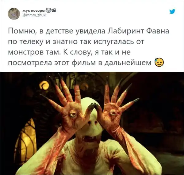 Пользователи Твиттера решили устроить маленький и ностальгический тред, посвященный сценам из фильмов и мультфильмов, которые очень испугали их в детстве. Наверняка те, кто родился в начале 90-х и смотрели в 7-8-летнем возрасте первую часть Матрицы, тот наверняка помнит жуткую сцену, где у Нео заклеился рот. Многим детишкам эта сцена еще много лет снилась в кошмарах. Итак, давайте посмотрим, какие еще моменты из фильмов вспомнили пользователи Твиттера.