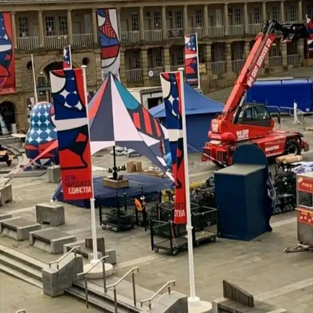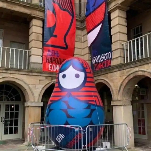 В Европе проходят съемки нового сериала Marvel "Секретное Вторжение", где главную роль исполнит Эмилия Кларк. Часть действия происходит в Москве, поэтому нужна стилизация под этот город. А так как в столице снимать дорого, то художники пытаются создать белокаменную где-то в другом месте, только вот получается это у их не очень: матрёшки, пирошки, порошки, а также почему-то шатер «Украина».