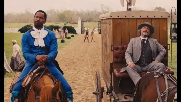 Перейдем к фильмам Квентина Тарантино. Как известно, в «Джанго освобожденный» очень много сцен с лошадьми, что неудивительно для вестерна. Однако Джейми Фокс предпочел отказаться от посторонних животных, отдав предпочтение своей личной лошади по кличке Гепард.