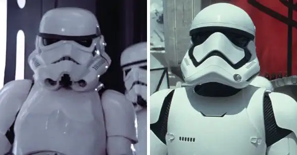 Рядовые имперские штурмовики в фильмах «Звёздные войны. Эпизод IV: Новая надежда» (1977) и «Звёздные войны: Скайуокер. Восход» (2019).