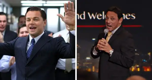 Настоящий Джордан Белфорт появляется в конце фильма в маленькой роли ведущего, представляющего публике сыгравшего его Леонардо Ди Каприо.