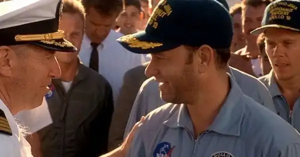 Реальный командир космического корабля «Аполлон-13» Джим Ловелл появляется в финальной сцене, где пожимает руку сыгравшему его самого Тома Хэнкса.
