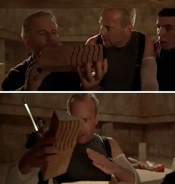 Небольшой ляп в «Пятом элементе». В одной из сцен священник берёт в руки один камень и отдаёт его Корбену, а в следующей сцене тот держит уже другой камень