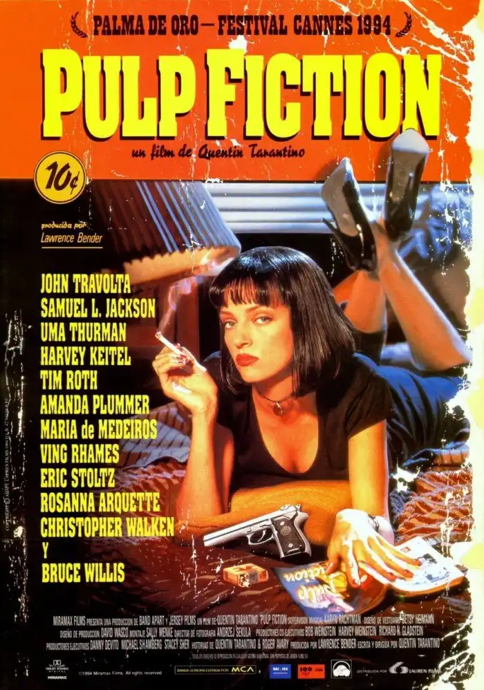 Замечали ли вы, что легендарный постер самого известного фильма Квентина Тарантино не является частью того, что показано в самой картине? Попробуйте вспомнить что-то подобное. Однако у вас не получится, ведь мы действительно не видим героиню Умы Турман в подобной обстановке, полностью в чёрном, да ещё и с пистолетом. Получается, что постером стала одна из промо-фотографий, которая была до съёмок самого фильма.