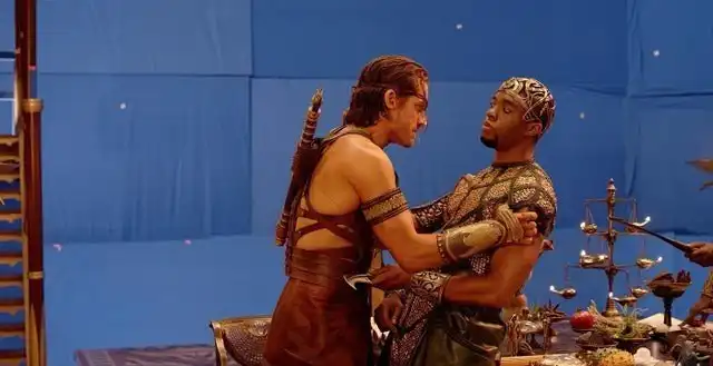 Николай Костер-Вальдау и Чедвик Боузман на съемках фильма «Боги Египта» (2016)