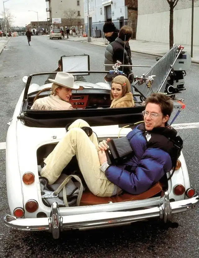 Оуэн Уилсон, Гвинет Пэлтроу и Уэс Андерсон готовятся к съёмкам «Семейки Тененбаум» (2001)