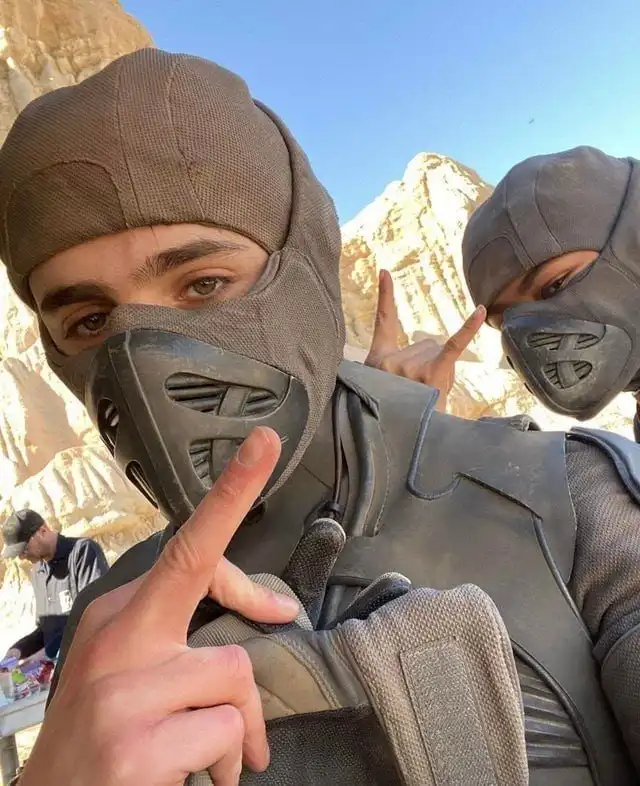 Тимоти Шаламе и Зендая на съемках фильма «Дюна» (2021)