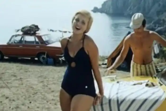 Светлана Аманова в "Спортлото-82" тут смотрится вообще спокойно - море, солнце, положено ходить ее героине в купальнике. Пусть даже таком смелом по советским временам.