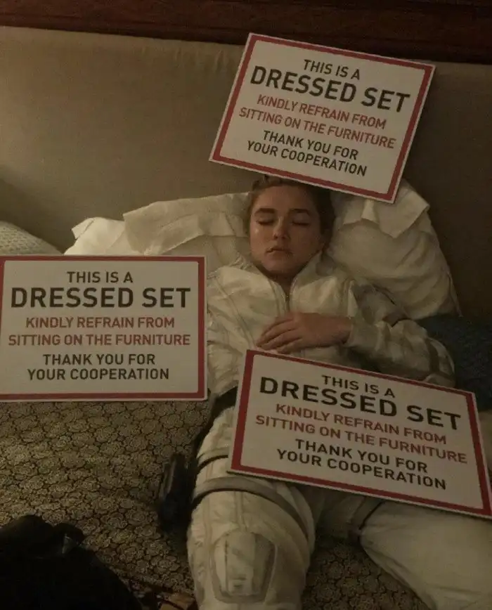 Флоренс Пью на съёмках фильма «Чёрная вдова» (2021)