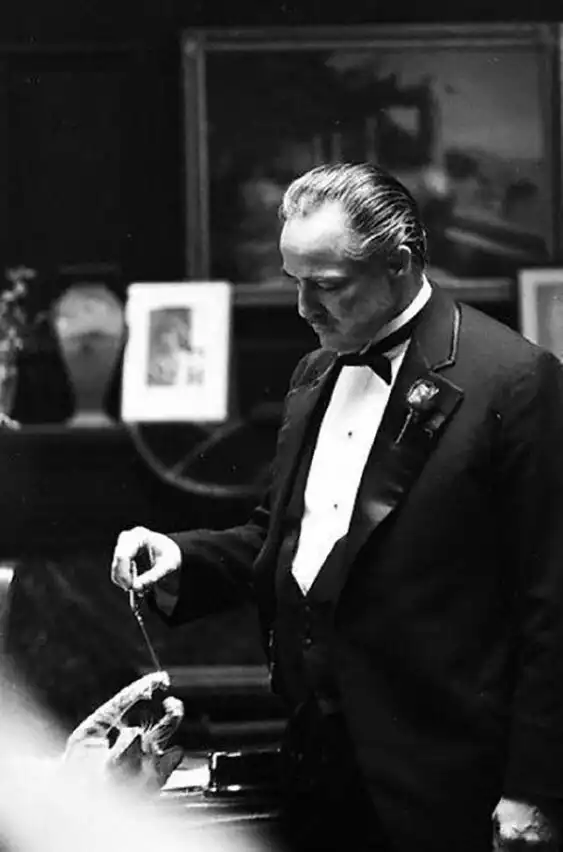 14. Марлон Брандо играет с котом на съёмках фильма «Крестный отец», 1971 год