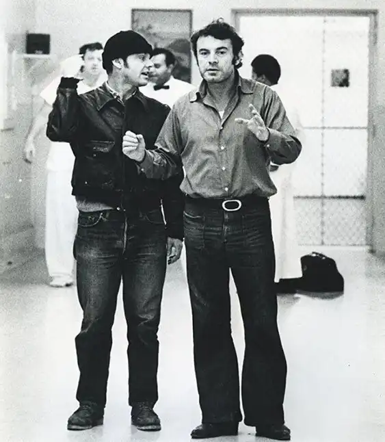 16. Джек Николсон и Милош Форман на съёмках фильма «Пролетая над гнездом кукушки», США, 1975 год