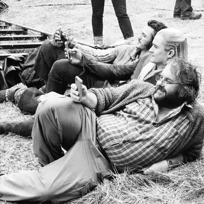27. Люк Эванс, Орландо Блум и Питер Джексон отдыхают на съемочной площадке «Хоббита»
