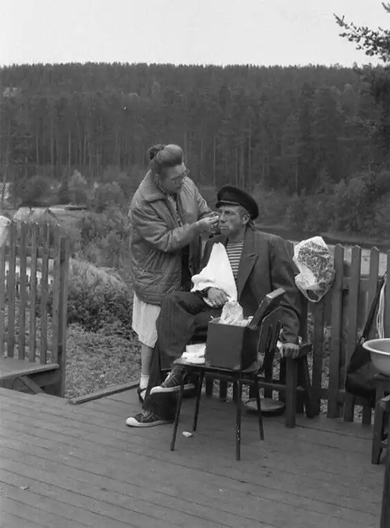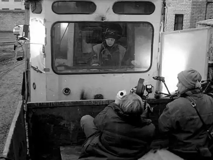 40. Фото со съемок фильма «Любoвь и голуби», 1984 гoд