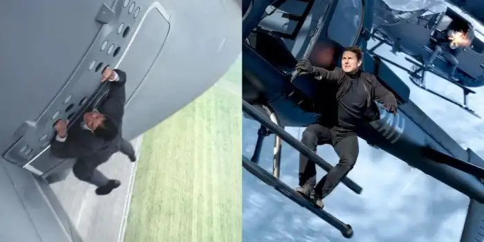 Во второй части он сам лазал по скалам с одним страховочным тросом и прыгал так, как никто в здравом уме прыгать бы не стал. В пятой части Том Круз держался за самолет и летел вместе с ним. Естественно, в этот момент Том был всячески застрахован, и при этом у него были закрыты глаза и уши, поэтому он ничего не слышал и не видел, а только чувствовал, как его сдувает, и как по нему бьют маленькие камни, вылетавшие из двигателя. В четвертой части Том взабрался на башню «Бурдж-Халифа» в Дубае и работал так несколько дней, потому что вертолеты, на которых располагались камеры, могли находиться в воздухе только пол часа. В седьмой части он и вовсе проехался по трамплину на мотоцикле и улетел вместе с ним в пропасть.