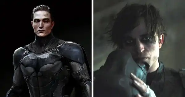 Фанатский арт 2019 года и Роберт Паттинсон в фильме «Бэтмен» (2022).