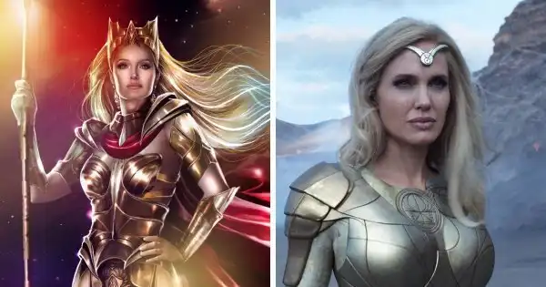 Фанатский арт 2019 года и Джоли в фильме «Вечные» (2021).