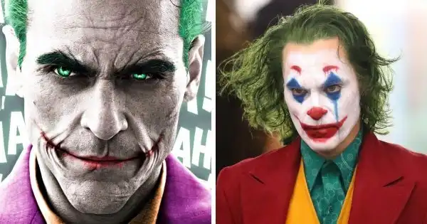 Фанатский арт 2018 года и Хоакин Феникс в фильме «Джокер» (2019).