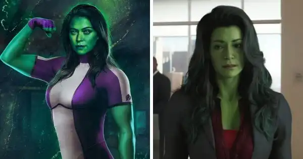 Фанасткий арт 2020 года и Татьяна Маслани в трейлере сериала «Женщина-Халк: Адвокат» (2022).