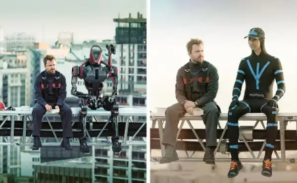 Должно быть, Аарону Полу нелегко изображать разговор с роботом, когда вместо него сидит некто в полосатом костюме