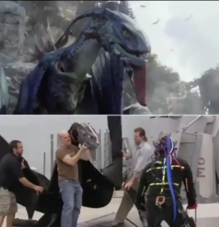 9. Закулисные кадры со съемок эпичной сцены с драконом из «Аватара»
