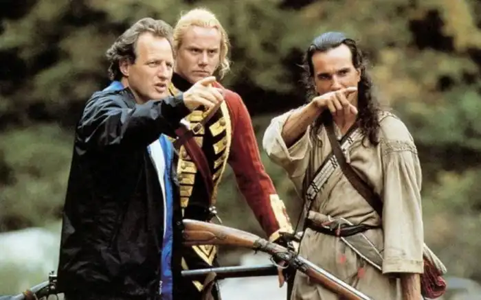 16. Дэниел Дэй-Льюис слушает указания режиссера на съемках «Последнего из могикан»