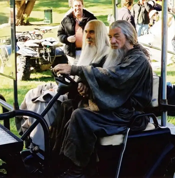 18. Иэн МакКеллен и Кристофер Ли отрываются на съемках «Властелина колец»