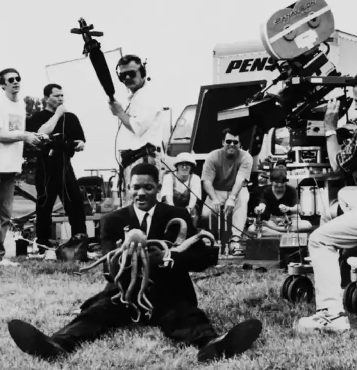 20. Уилл Смит держит инопланетянина на съемках «Людей в черном»