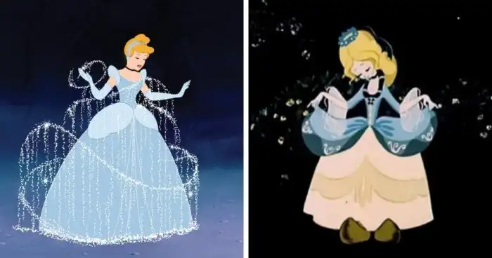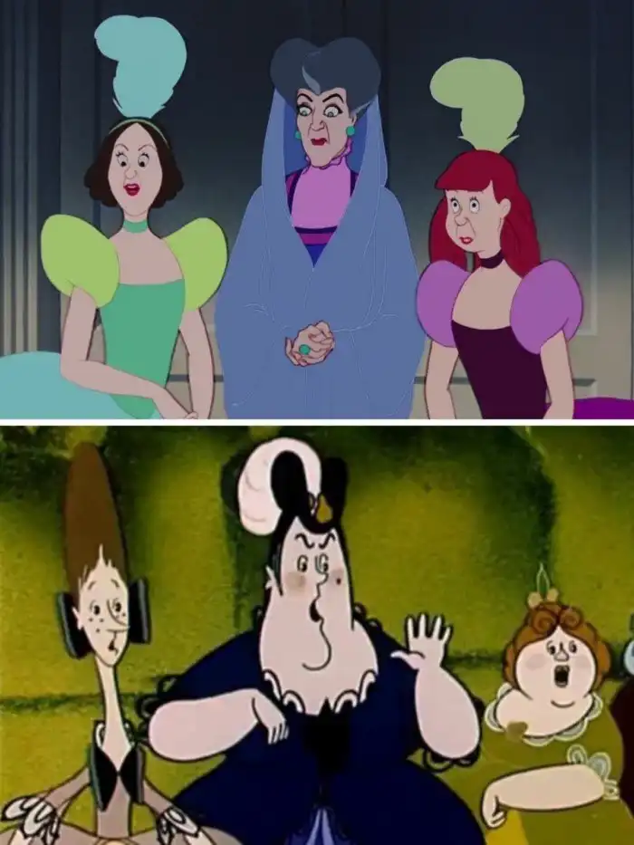 Несмотря на разную рисовку, Золушки довольно похожи. Диснеевский мультфильм вышел в 1949 году, а советский — в 1979-м. Так что зарубежная Золушка старше на целых 30 лет.