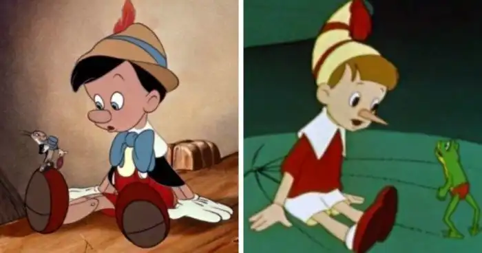 Два носатых деревянных парня так похожи, и неудивительно, ведь «Золотой ключик, или Приключения Буратино» Алексея Толстого — это литературная обработка сказки Карло Коллоди «Приключения Пиноккио. История деревянной куклы». Диснеевский мультфильм появился в 1940 году, советский — в 1959-м.