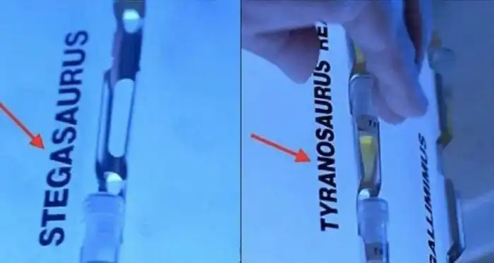 На контейнерах для хранения криогенных материалов в фильме неправильно написаны слова "стегозавр" и "тираннозавр"