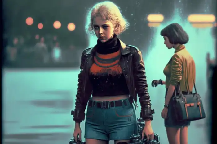 Но Электроника мы вспомнили, разумеется, неслучайно. Взгляните, как могли бы выглядеть кадры из знакомого в детстве советского фильма, если бы их снимали в стиле киберпанк.