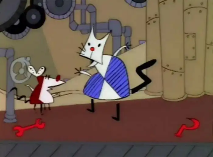 Корявые, плохо анимированные кот и мышь говорят на непонятном языке, пытаются встать в очередь, но на этом эпизод обрывается. Неудивительно, что даже Красти недоумевает, что это вообще было, а после выхода «Рабочего и лентяя» его шоу закрывают.