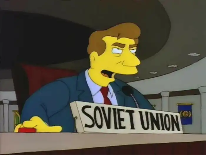 Но «подвиг» Гомера приводит к далеко идущим последствиям. На заседании ООН российский представитель говорит «Советский Союз с радостью амнистирует Ваше судно», а в ответ на вопрос, откуда сейчас СССР, ведь он развалился ещё в 1991, говорит: «Мы хотели, чтобы вы так думали».