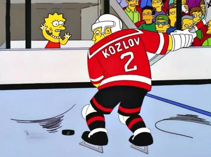 Интересно, что в НХЛ играли аж два русских хоккеиста Козлова – Виктор Николаевич (р. 1975) и Вячеслав Анатольевич (р. 1972), но второй не в пример известнее – он один из семи русских хоккеистов, сыгравших более 1000 матчей в НХЛ. Так что в «Симпсонах» имеется в виду, скорее всего, Вячеслав Козлов.