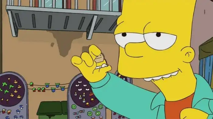 Эпизод Boy Meets Curl – про то, как Гомер и Мардж стали спортсменами-керлингистами. Одна из сюжетных линий эпизода – увлечение Лизы коллекционированием значков с олимпийскими маскотами – символами Олимпийских игр в разные годы. Увлечение заходит слишком далеко и становится похожим на наркоманию. Ради редкого значка Лиза продает свои жемчужные бусы и, поняв, что дело плохо, обращается за помощью к брату. «Без бус я – просто большая Мэгги», – ноет Лиза.